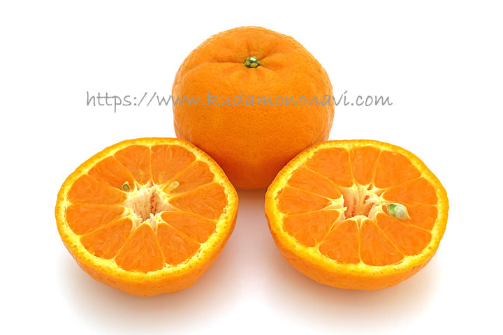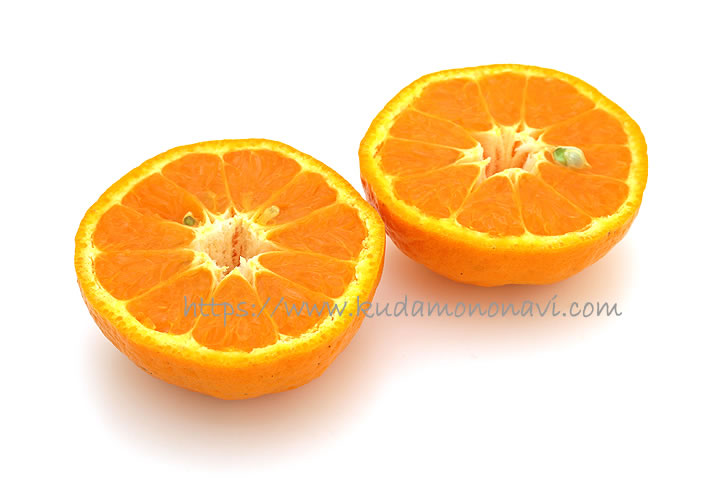 特徴としては甘味と酸味が調和した濃厚な味で、形は扁平形の低しょう系ではなく、長球形の高しょう系になります。また晩生種である吉浦ポンカンは出回り時期が2月から3月上旬頃で、1月頃に出荷される早生種のポンカンと比べると少し遅め。ちなみに吉浦ポンカンは「せとみ」や「南津海」の親品種でもあります。