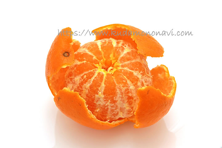 さて、この吉浦ポンカンはサイズが110~120gほどで、果皮は濃いめのオレンジ色をしていて、ボールのような丸い球形。またポンカンは浮き皮になりやすいですが、これは隙間がなくそれでいて皮はむきやすかったです。